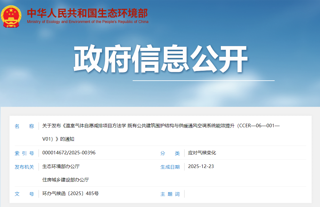 近日,为推动建筑领域节能降碳、控制和减少建筑行业温室气体排放,生态环境部联合住房和城乡建设部正式发布《温室气体自愿减排项目方法学 既有公共建筑围护结构与供暖通风空调系统能效提升(CCER—06—001—V01)》(以下简称《方法学》)。该方法学作为我国建筑领域的首个温室气体自愿减排项目方法学,对我国推动建筑行业绿色低碳转型、积极稳妥推进碳达峰碳中和具有重要意义。
