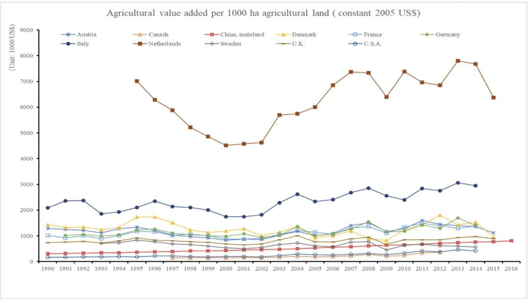 第二个现象是农产品复杂度低。比如同样一个农产品,香蕉,日本用香蕉可能造出几十种产品来。这里有一个非常重要的概念,你可以把中国的农产品做得非常单一,但是单一的同时要强,强的标志就是提高农产品的复杂度,包括加工业产值的占比以及农产品的深加工。