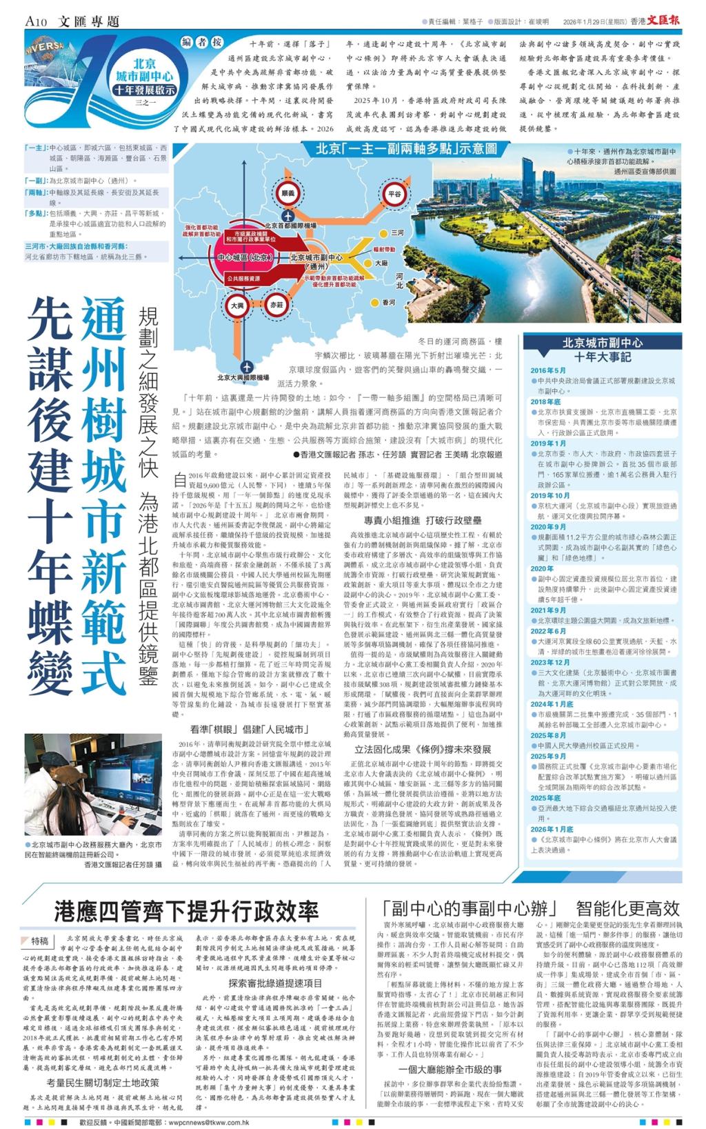 香港文汇报记者深入北京城市副中心,探寻副中心从规划定位开始,在科技创新、产城融合、营商环境等关键议题的部署与推进,从中梳理有益经验,为北部都会区建设提供借鉴。