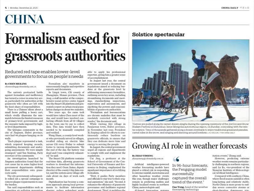 近日,《中国日报》就各地整治形式主义给基层减负的措施进行了报道,并采访清华大学智库中心助理研究员、中国新型城镇化研究院助理研究员冉奥博及多位专家展开解读。