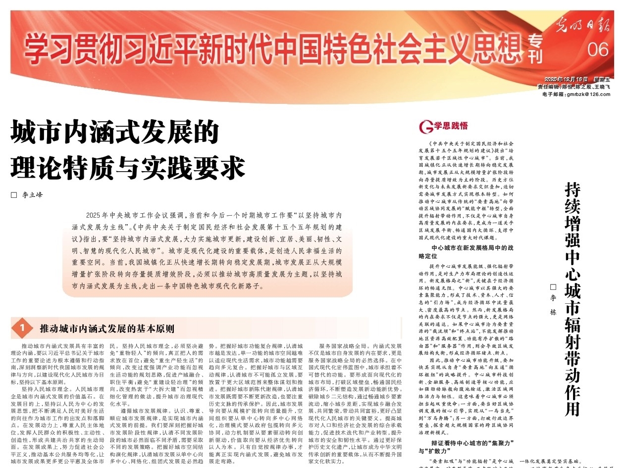 12月19日,《光明日报》刊登清华大学城市治理与可持续发展研究院副研究员、中国新型城镇化研究院高级研究专员李栋署名理论文章《持续增强中心城市辐射带动作用》。