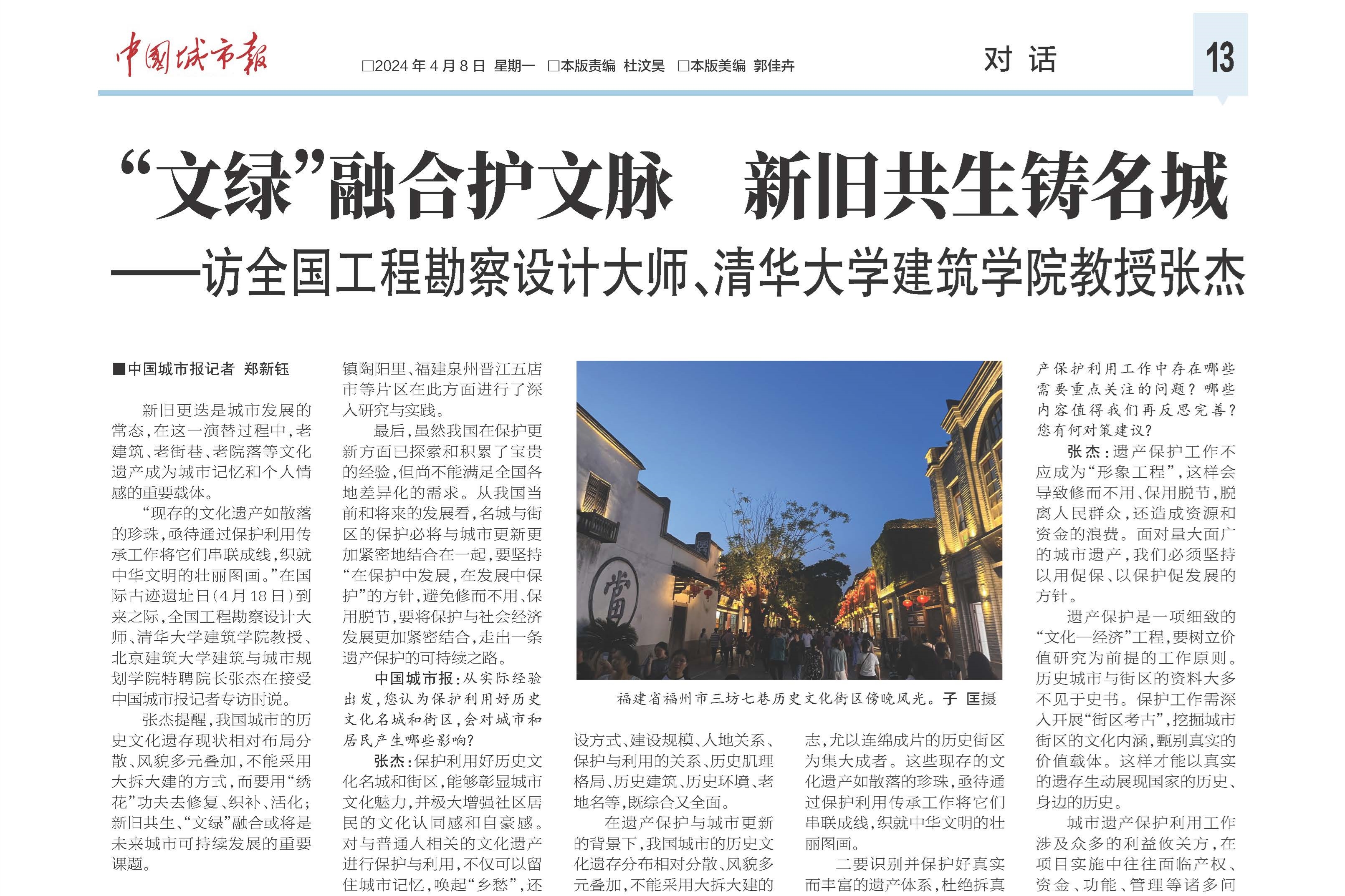 在“国际古迹遗址日”(4月18日)来临之际,《中国城市报》特别邀请全国工程勘察设计大师、清华大学中国新型城镇化研究院特聘专家张杰教授,分享对城市文化遗产保护利用与城市可持续发展的深度思考。