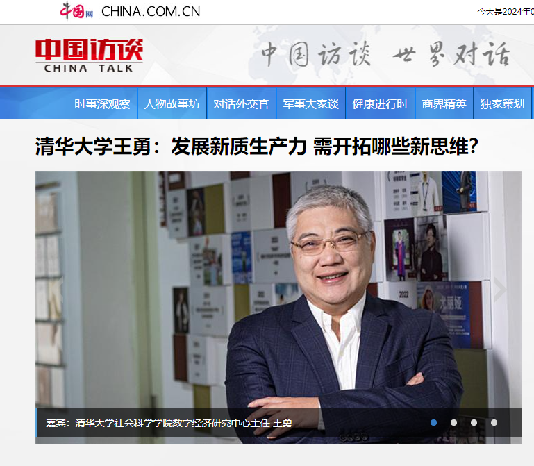 近日,中国网《中国访谈》栏目推出《向“新”而行》大型系列访谈专题,邀请清华大学社会科学学院数字经济研究中心主任、清华大学中国新型城镇化研究院特聘专家王勇教授,深度解析新质生产力的要义,并探讨发展新动能的方法和路径。