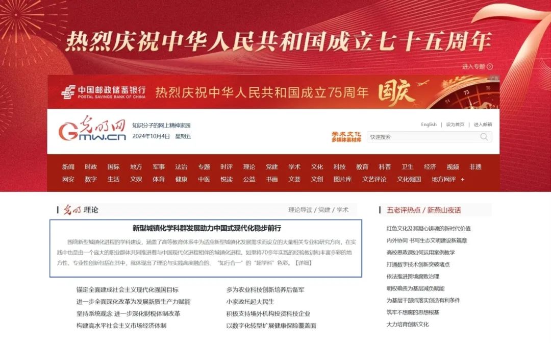 在庆祝中华人民共和国成立75周年之际,光明网理论频道推出国庆专栏,特邀清华大学中国新型城镇化研究院执行副院长尹稚教授,解读新型城镇化学科群75年来的建设发展历程,以及该学科专业如何助力中国式现代化稳步前行。