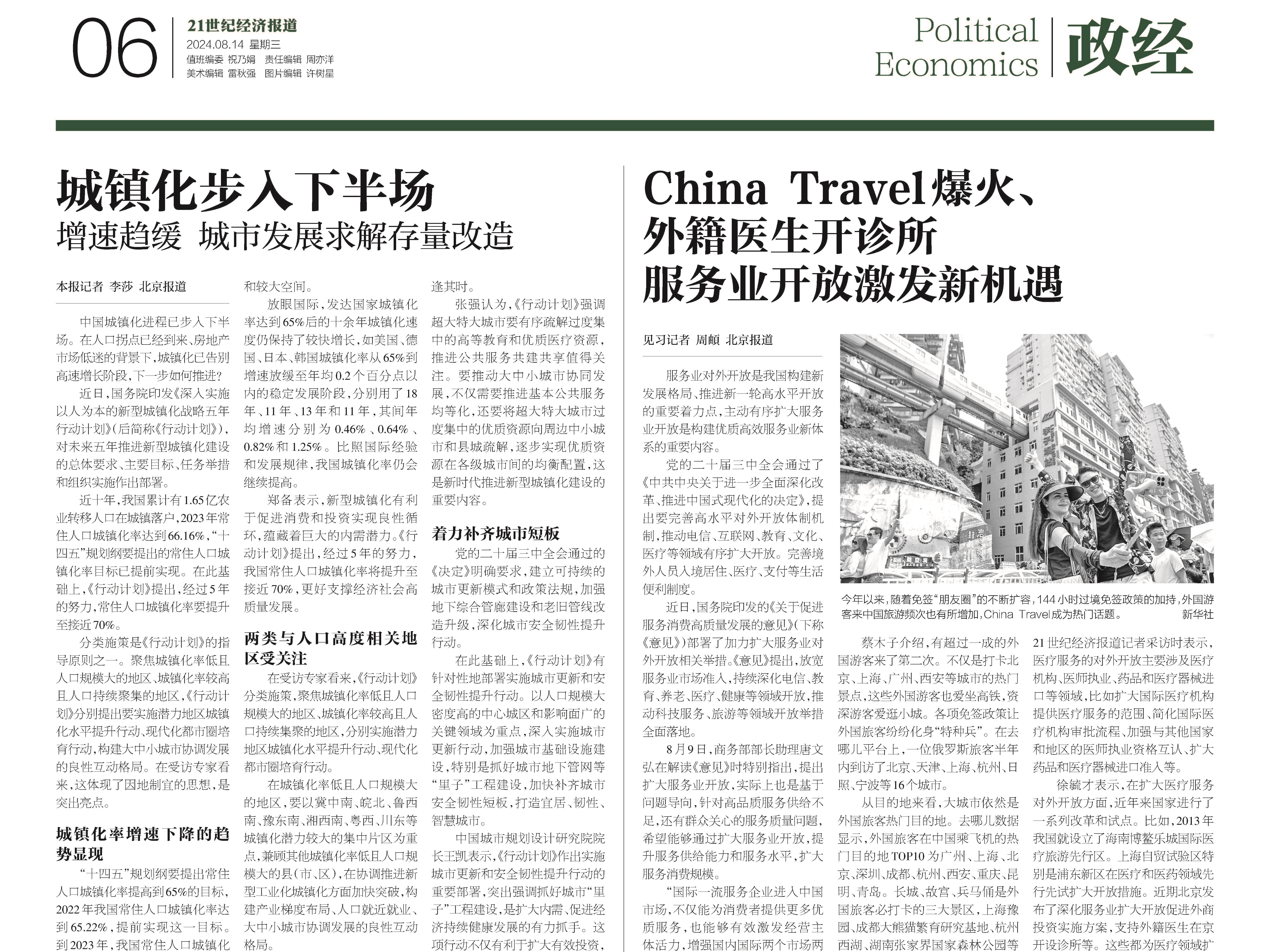 近日,国务院印发《深入实施以人为本的新型城镇化战略五年行动计划》。《21世纪经济报道》就此采访了清华大学中国新型城镇化研究院执行副院长尹稚教授,以及张强、贾若祥、王凯、陈文静等多位专家展开专业化解读。
