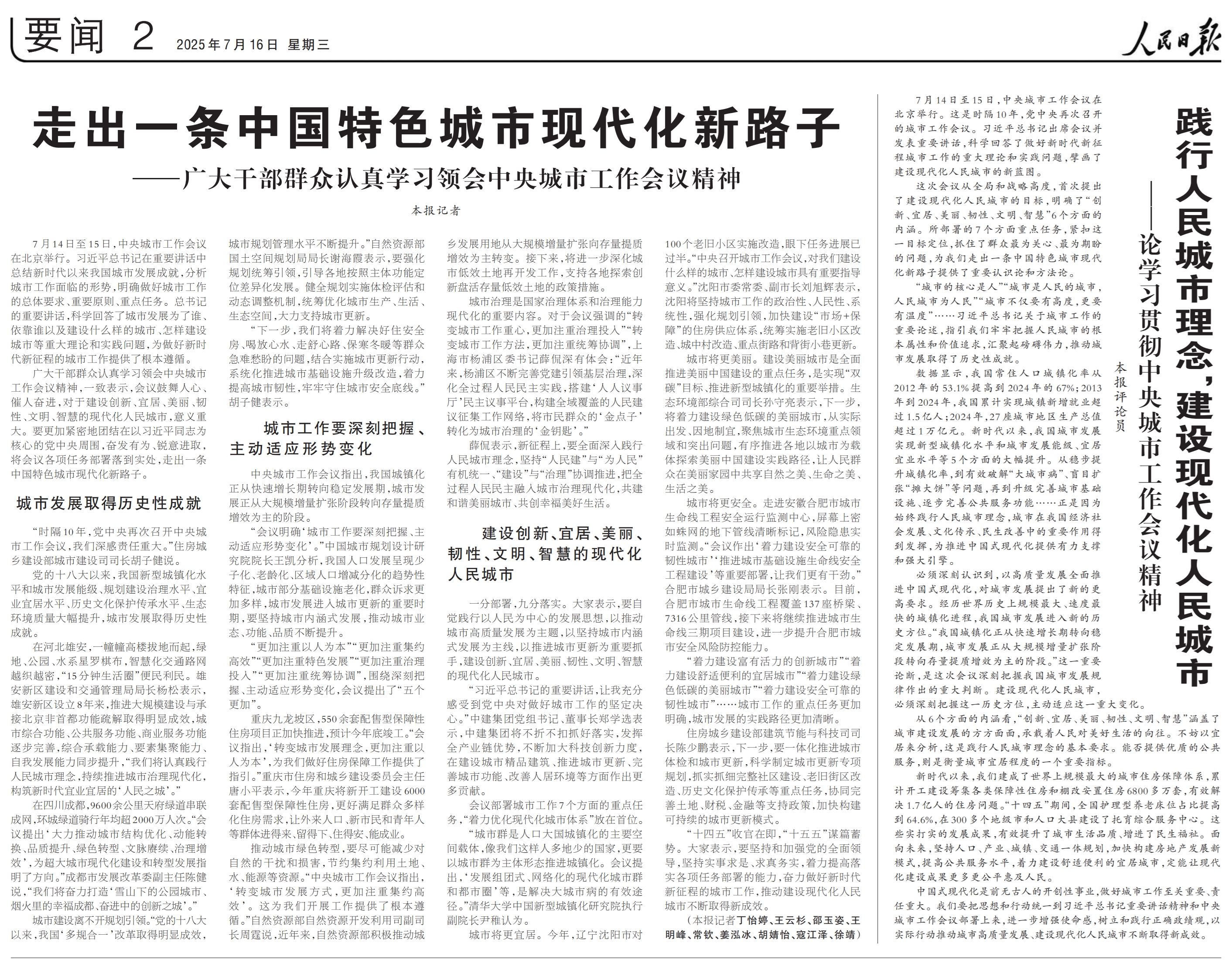 中央城市工作会议7月14日至15日在北京举行,广大干部群众认真学习领会中央城市工作会议精神。《人民日报》就此采访了清华大学中国新型城镇化研究院执行副院长尹稚。