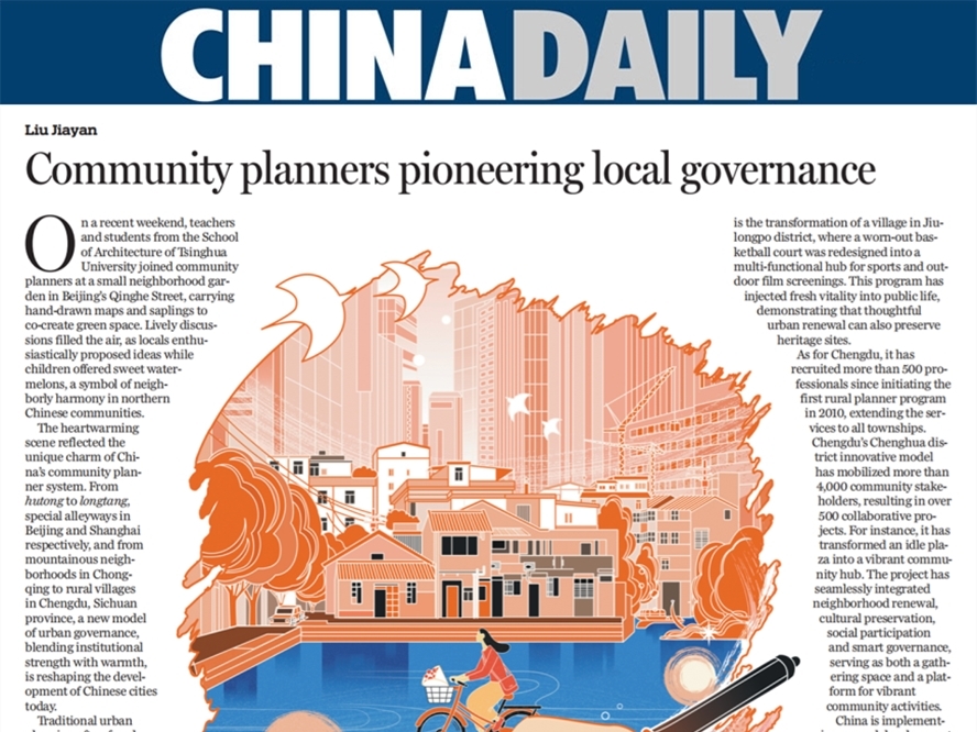 近日,清华大学建筑学院教授、中国城市规划学会住房与社区规划专委会秘书长刘佳燕,在《中国日报》发表署名文章《社区规划师:创新基层治理新路径》。