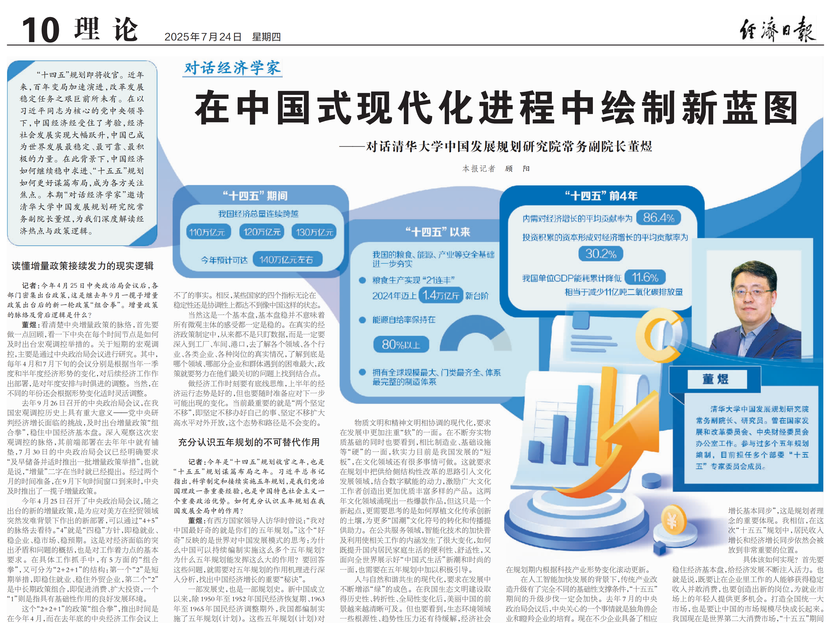 近日,《经济日报》专访清华大学中国发展规划研究院常务副院长、清华大学中国新型城镇化研究院特聘专家董煜。