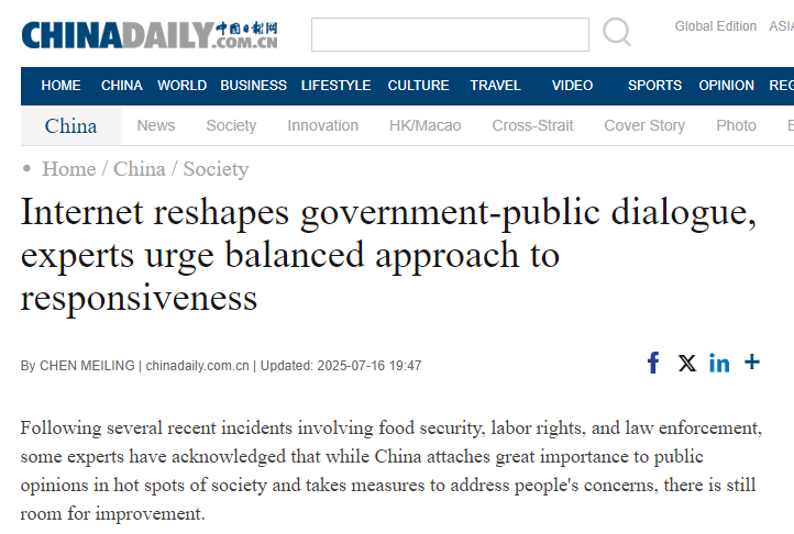 近日,多起社会事件引发重大网络舆情。《中国日报》就此采访了清华大学智库中心助理研究员、清华大学中国新型城镇化研究院助理研究员冉奥博。