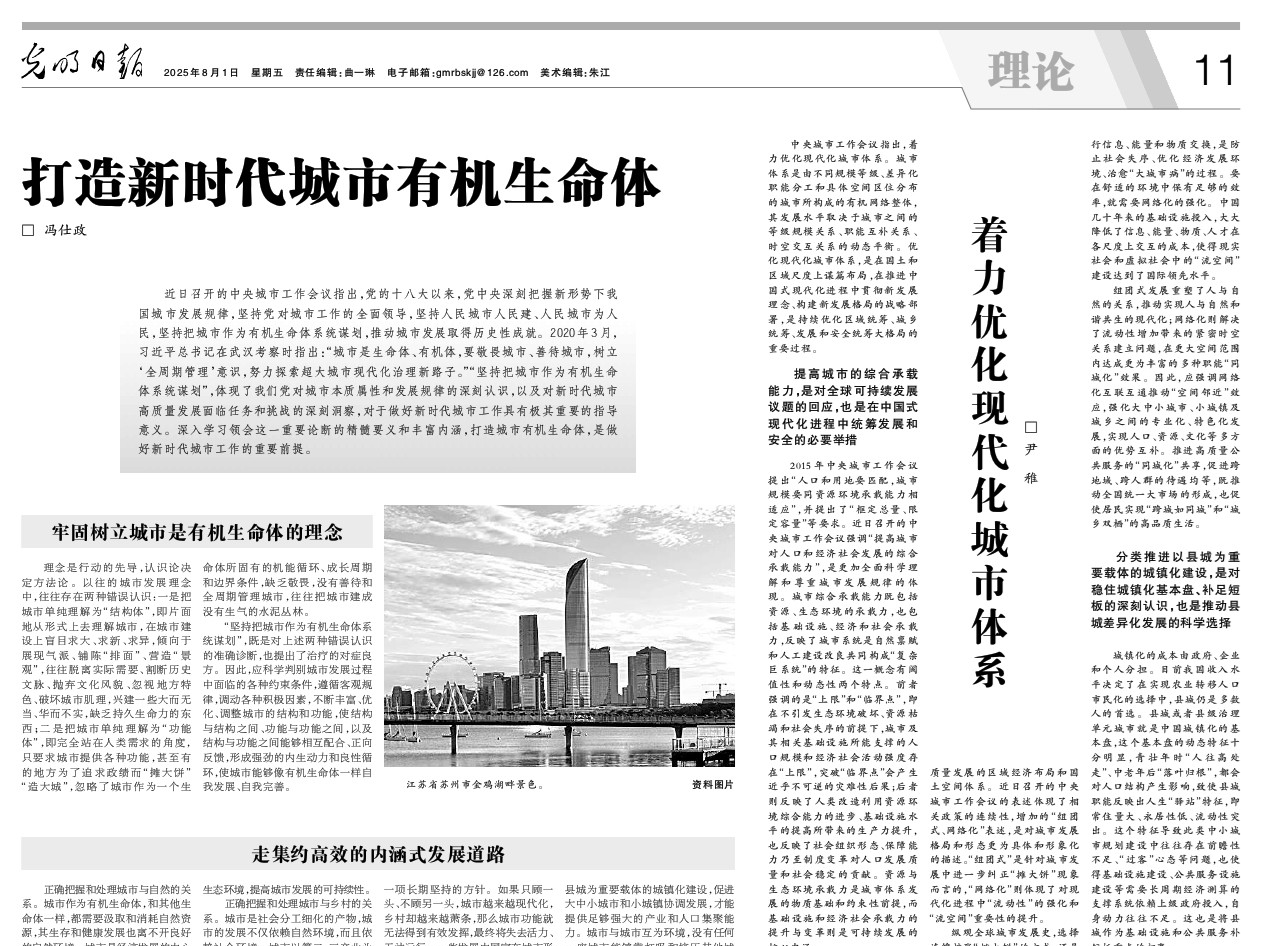 8月1日,《光明日报》理论版刊登清华大学中国新型城镇化研究院执行副院长尹稚教授署名文章《着力优化现代化城市体系》。
