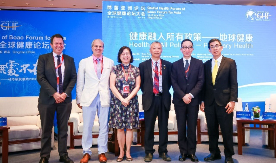 2019年6月12日,清华大学地球系统科学系主任、中国新型城镇化研究院健康城市研究中心主任宫鹏教授应邀参加博鳌亚洲论坛全球健康论坛大会“健康融入所有政策——地球健康”分论坛,本场分论坛旨在探讨以全方位行之有效的政策来保护地球健康,进而保护人类健康。