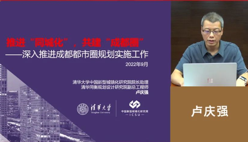 2022年10月10日,成德眉资四市政协助推制造业高质量发展专题协商会议在眉山召开。会议邀请了清华大学中国新型城镇化研究院院长助理、城市群与都市圈研究中心主任、北京清华同衡规划设计研究院副总规划师卢庆强进行了视频授课。